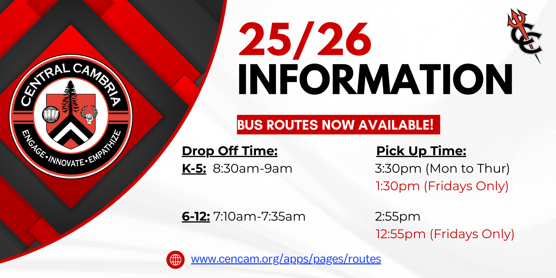 Please allow extra time for both morning pick-ups and afternoon drop-offs. Safety is always our top priority, and our bus drivers are dedicated to ensuring that every student arrives at school and home safely.
